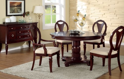 Wooden Round Dining Table and 2 Fabric Seat Side Chairs and 2 Fabric Seat Arm Chairs in Cherry Finish #PD F21095,f11107,f11108 Feature
